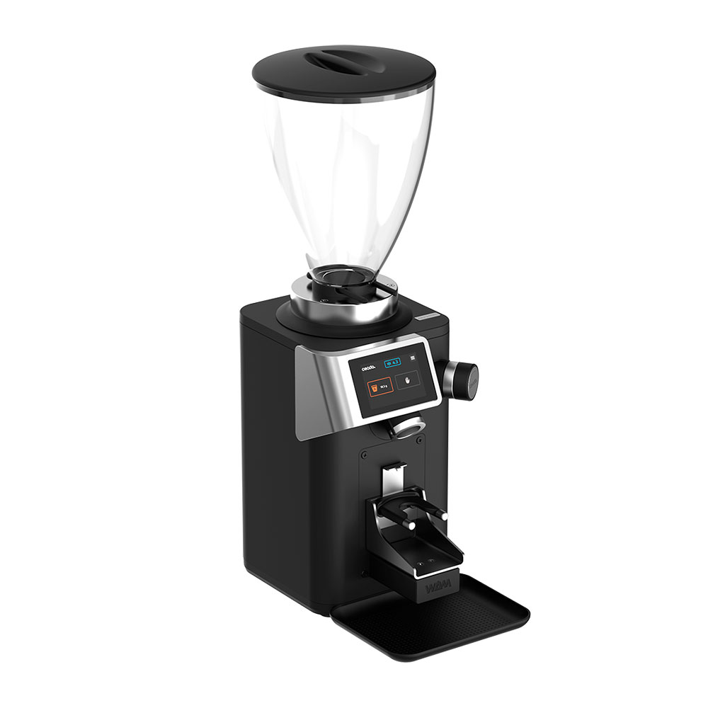 The user interface is designed to be state-of-the-art, ensuring intuitive use for all and features a customizable dose layout, programmable air flow, maintenance alerts, five grinding activation modes, and a comprehensive menu of adjustable settings